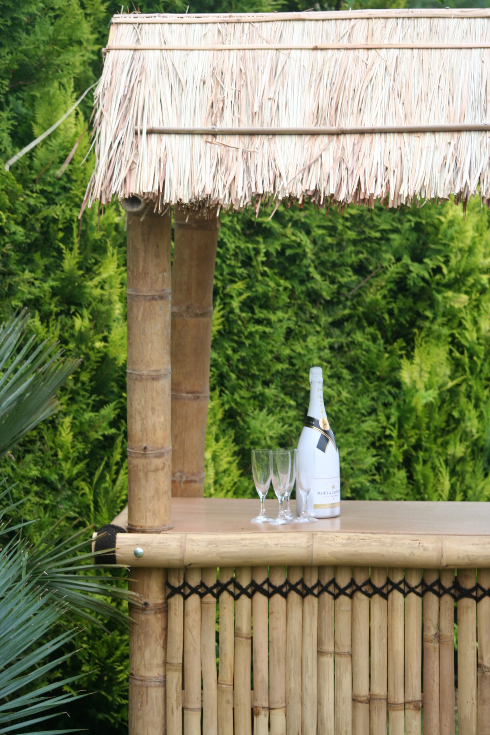 Deze Tikibar is geschikt als bijvoorbeeld uitgiftepunt op uw feest. Het heeft een vast uitgifte blad. Eenvoudig verrijdbaar op 4 wielen en eenvoudig te plaatsen. Het dakje is af te nemen zodat het onder standaard deuren naar binnen kan.